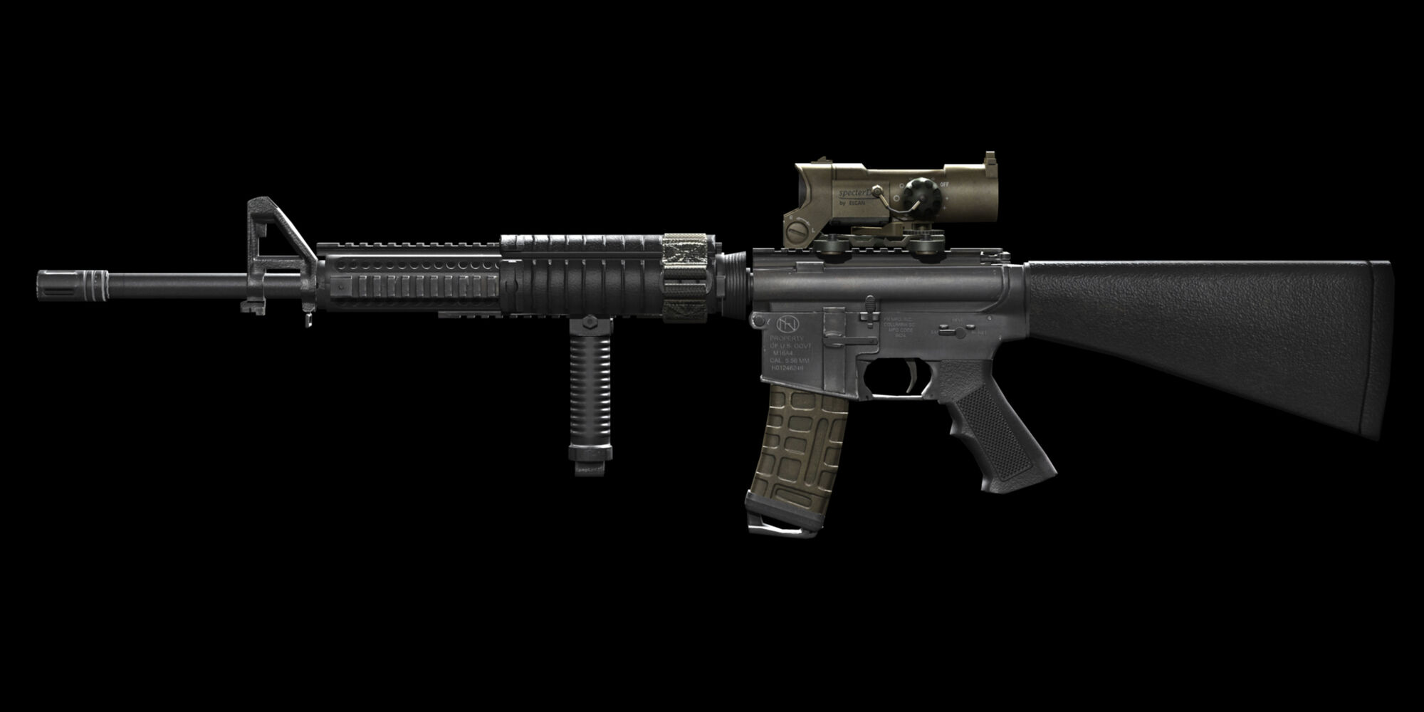 The m16a4 is a 556mm x 45mm gas operated assault rifle m1. The m16a4 is a 5.56mm x 45mm gas operated assault rifle.